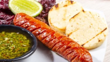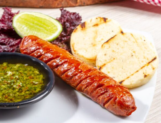 Golden grilled arepa filles with fresh cheese and our authentic Chorizo.